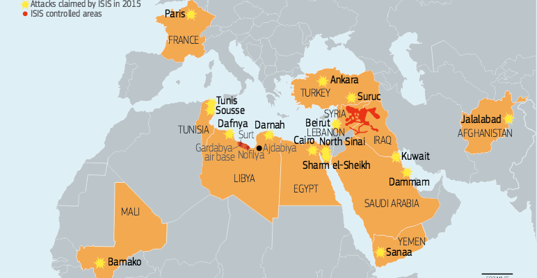 - Ven. 26 juin 2015, alors qu’est réuni à Bruxelles un sommet européen, un autre attentat a lieu près de Lyon dans une entreprise classée Seveso. Le président Hollande quitte avant l’heure la réunion. L’évènement se révèlera beaucoup moins important que prévu malgré la précipitation du gouvernement français (Explosion de Lyon. Un conflit de travail autant qu’un attentat ? ). En fait, c’est surtout l’attentat de Sousse en Tunisie où de nombreux Européens sont tués qui sonne l’alerte dans d’autres pays. Il se révèle un des attentats majeurs des dernières années pour les Européens, en particulier pour le Royaume-Uni, qui paie un prix lourd (une trentaine de Britanniques tués). L’attaque à la Kalachnikov, dans un lieu touristique prisé par les étrangers (l’hotel Imperial), fait 38 morts et autant de blessés selon le premier bilan.