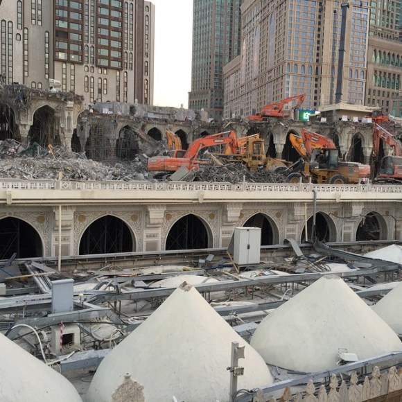 Destruction en cours des portiques ottomans, La Mecque 2014.