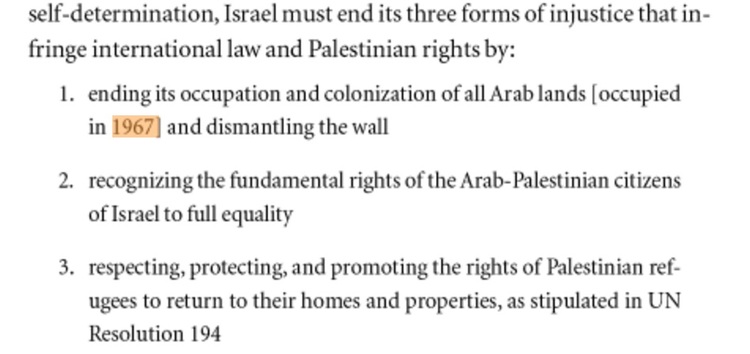 La première preuve de la modification de l’objectif premier du BDS apparait en page 6 du livre d’Omar Barghouti, Boycotter, Désinvestir, Sanctionner, publié le 26 mai 2011.