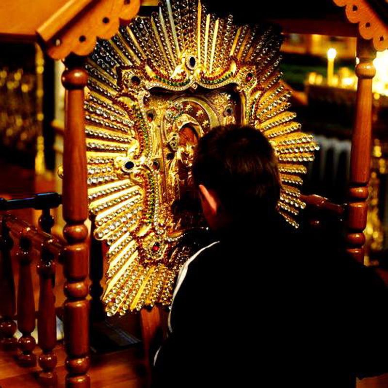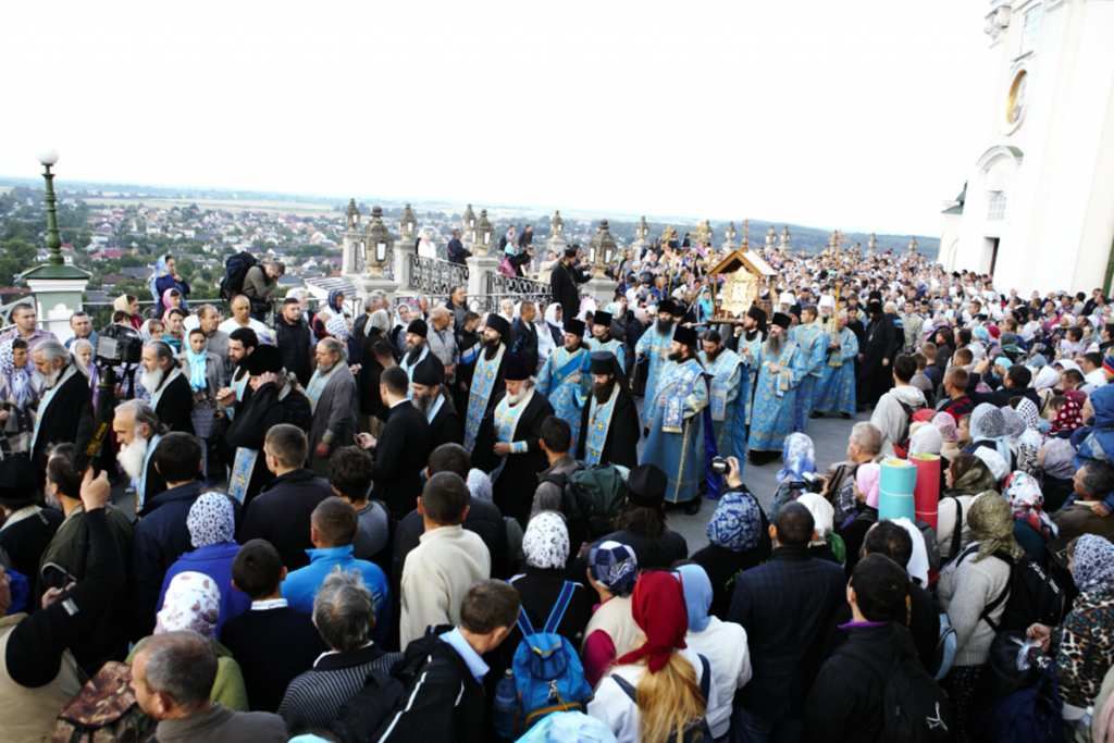 Devant et derrière la colonne nous accompagnaient des forces de l’ordre, roulait la voiture des urgences. Il n’y avait pas le moindre malveillant ni aucun provocateur. Il est clair que les gens du coin, les gens normaux n’ont pas besoin de cela. Ce sont des gens de passage qui organisent des provocations, sur commande particulière, avec un but précis. A mi chemin nous accueille une pluie terrible (il sourit). Jusqu’alors, marcher était très bien: un petit peu de soleil, des petits et gros nuages… Ni trop chaud ni trop froid. Mais ensuite, le ciel s’est couvert, et la pluie est tombée, ni forte ni faible, mais prolongée, assez pour nous tremper. Naturellement, des ampoules ont fait leur apparition, les chaussures étaient humides. Mais les gens ne s’arrêtaient pas, sans interrompre la prière, ils attrapaient au passage des pèlerines, s’en couvraient et continuaient. C’est pourquoi je le dis, pour comprendre l’Orthodoxie, il faut participer à une procession. Comment on recevait les pèlerins, c’était une chose, mais comment on recevait la Mère de Dieu, je n’avais jamais vu cela nulle part. A l’entrée de Kremenets, des enfants sont arrivés avec des corbeilles de fleurs et les ont semées devant l’icône, et ce sur quelques kilomètres, de là au monastère il y a une bonne distance. Près de la porte du monastère, il y avait toute une couche de fleurs, en plus pas jetées au hasard, mais en tapis orné, où chaque dessin a été disposé avec attention et amour.+