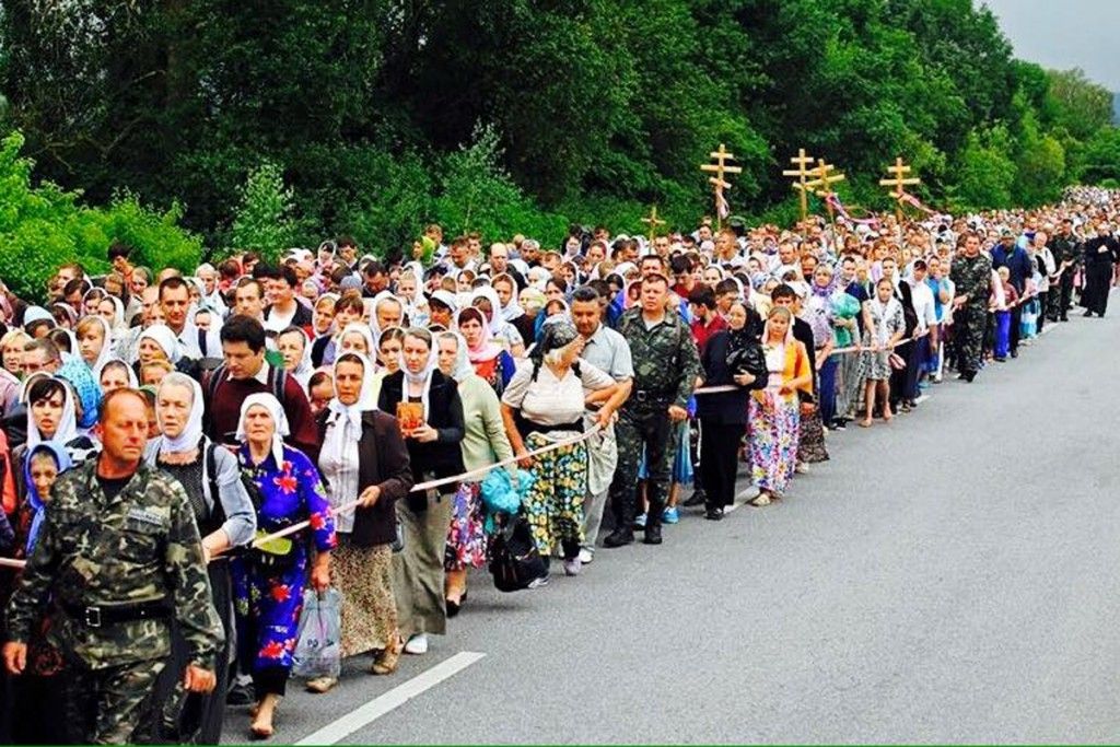 Depuis l’arche avec le clocher jusqu’à la porte de l’église s’étendait un chemin de fleurs. C’est vraiment super que le peuple se soit levé. Pour être honnête, je n’étais pas le seul à me faire du souci, de nombreux habitants de Potchaïev étaient dans le même cas: pourvu que les gens ne restent pas sans réponse! Mais dès que nous sommes sortis de Potchaïev, oh! comme il y avait du monde. Et ce fleuve humain grossit à chaque village et on comprend: frères, tout n’est pas perdu!.+