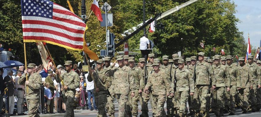 A U.S. Army unit marches during a yearly military parade celebrating the Polish Army Day, in Warsaw, Poland, Tuesday, Aug. 15, 2017. (AP PhotoAlik Keplicz)   A U.S. Army unit marches during a yearly military parade celebrating the Polish Army Day, in Warsaw, Poland, Tuesday, Aug. 15, 2017. (AP Photo/Alik Keplicz)