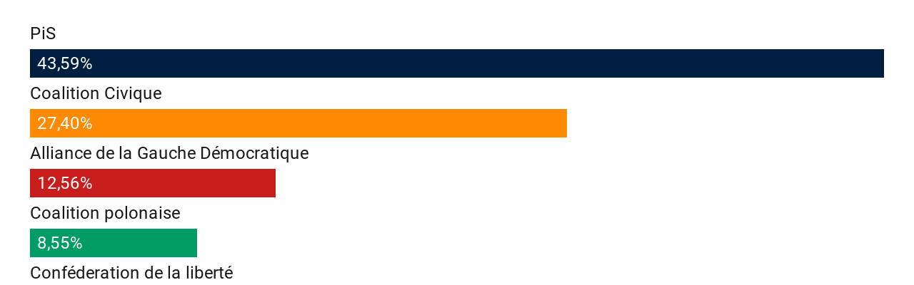 La priorité des priorités était donc pour lui de reconduire le 13 octobre dernier[1] la majorité absolue au parlement pour sa coalition Droite unie qui rassemble le PiS et deux petits partis de droite :