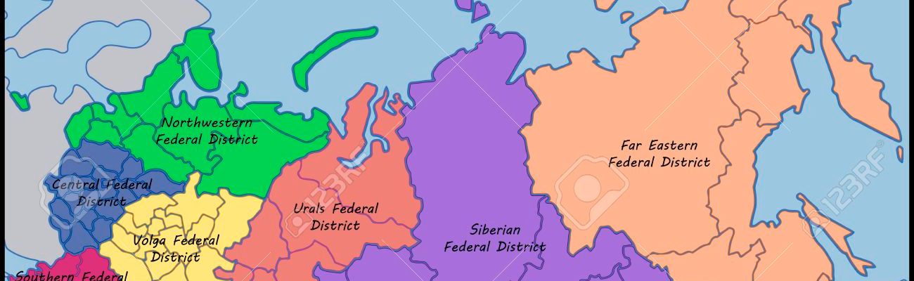 (1) Le district fédéral central (capitale: Moscou): (2) Le district fédéral du Sud (capitale: Rostov-sur-le-Don); (3) Le district fédéral du Nord-Ouest (capitale: Saint-Pétersbourg); (4) Le district fédéral de Privoljsk ou de la Volga (capitale: Nijni-Novgorod). (5) Le district fédéral de l’Oural (capitale: Iekaterinbourg); (6) Le district fédéral sibérien (capitale: Novosibirsk); (7) Le district fédéral extrême-oriental (capitale: Khabarovsk); |