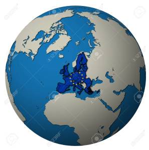 european union territory with flag over globe map