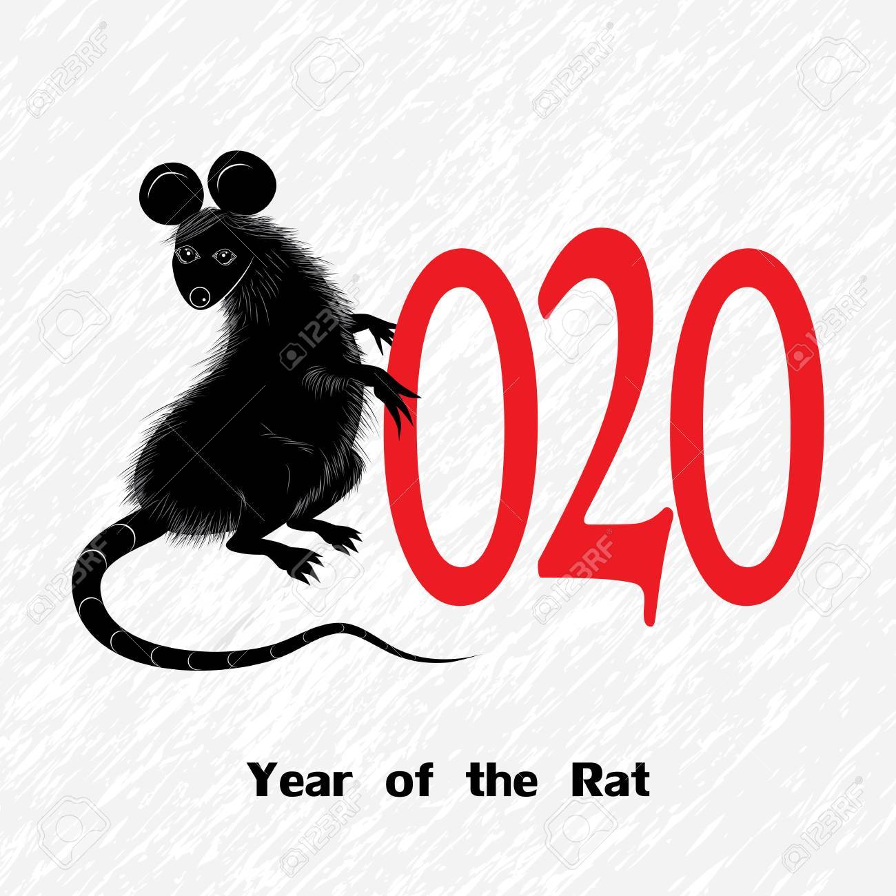 Rat, mouse as symbol for year 2020 by Chinese traditional horoscope with grass