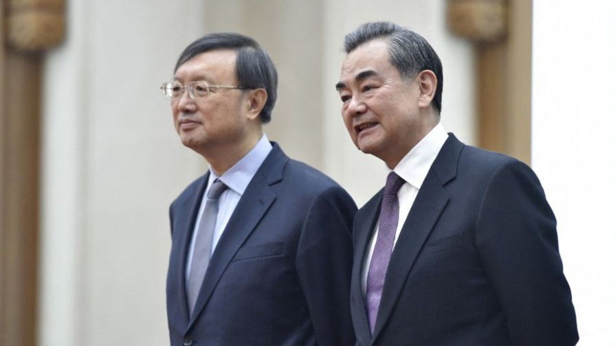 Le directeur du bureau de la Commission centrale des affaires étrangères du Parti communiste chinois, Yang Jiechi (à gauche), et le ministre chinois des Affaires étrangères, Wang Yi (à droite), le 3 avril 2018 lors d’une visite au Zimbabwe – Parker Song / POOL / AFP – cf/ https://www.lexpress.fr/actualite/monde/asie/rencontre-chine-etats-unis-yang-jiechi-et-wang-yi-architectes-de-la-diplomatie-chinoise_2147009.html