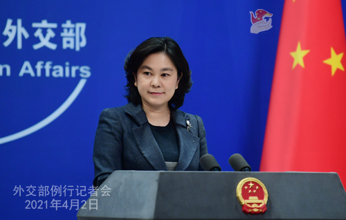 Conférence de presse du 2 avril 2021 tenue par la porte-parole du Ministère des Affaires étrangères Hua Chunying