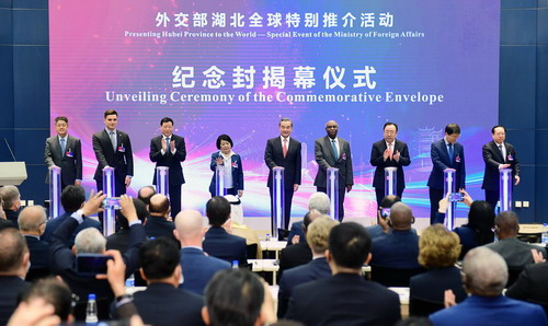 En outre, le Conseiller d’État Wang Yi, les principaux responsables de la province du Hubei et des représentants des envoyés diplomatiques étrangers en Chine ont dévoilé ensemble les enveloppes commémoratives diplomatiques dédiées à l’événement de présentation du Hubei au monde.