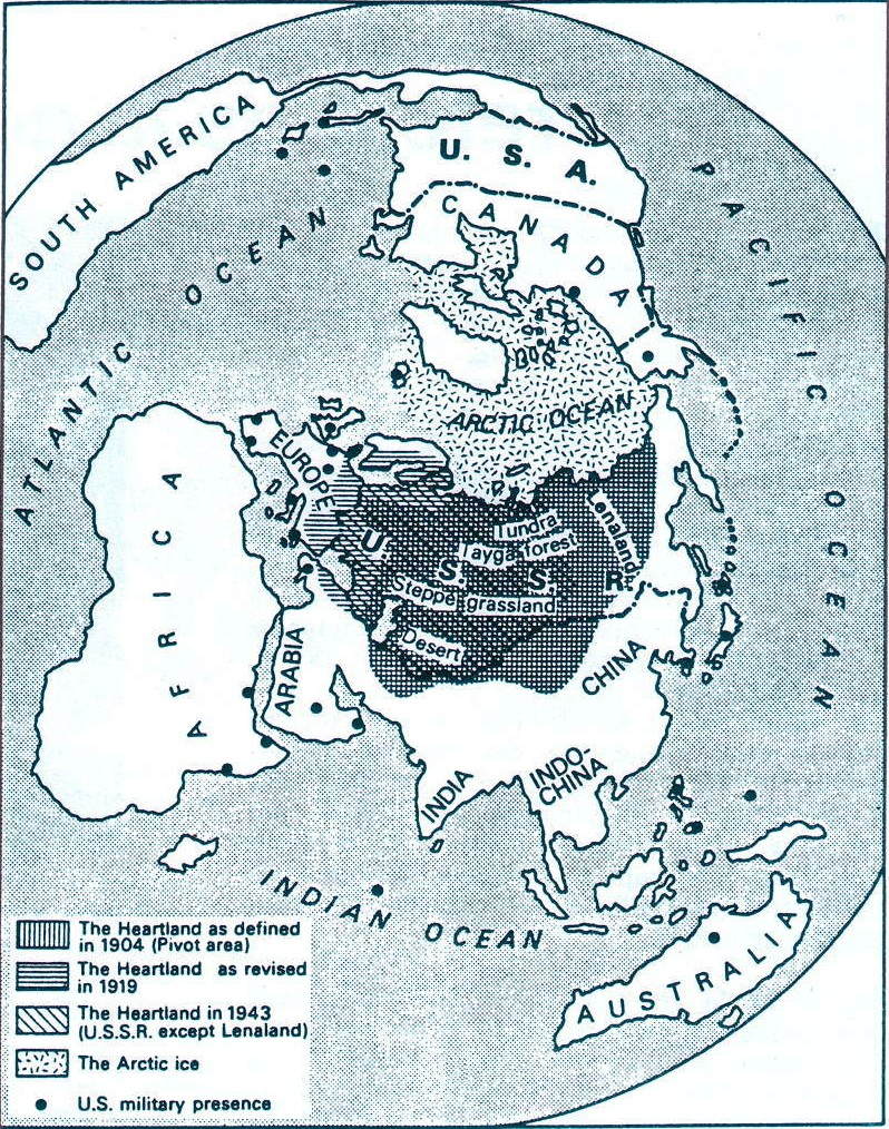 Par conséquent, pour assurer l’hégémonie des puissances maritimes, il fallait maintenir le « heartland » (la masse terrestre eurasiatique) dans les divisions et la guerre.