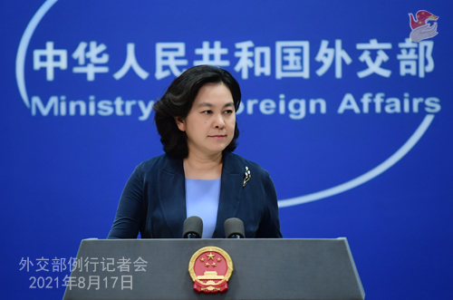 Conférence de presse du 17 août 2021 tenue par la porte-parole du Ministère des Affaires étrangères Hua Chunying