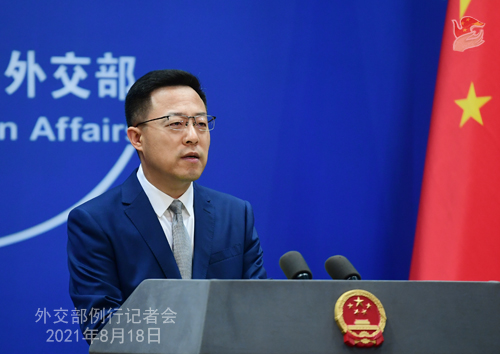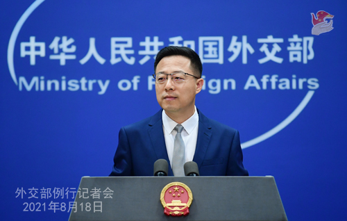 Conférence de presse du 18 août 2021 tenue par le porte-parole du Ministère des Affaires étrangères Zhao Lijian