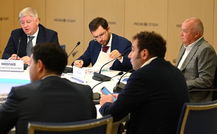PH11 Le chef de cabinet adjoint du bureau exécutif présidentiel, Sergei Kiriyenko, à droite, et le directeur général Rossiya Segodnya, Dmitry Kiselev, lors de la cérémonie de signature des engagements volontaires par les sociétés fondatrices de l’Alliance russe pour la protection des enfants dans l’environnement numérique. Photo : RIA Novosti