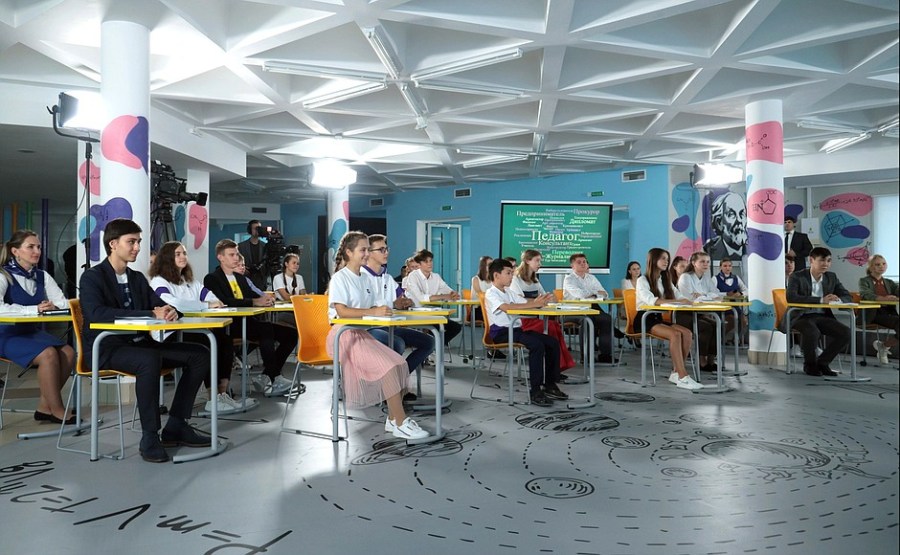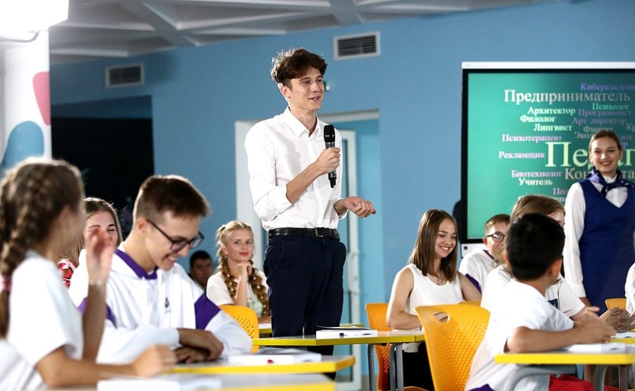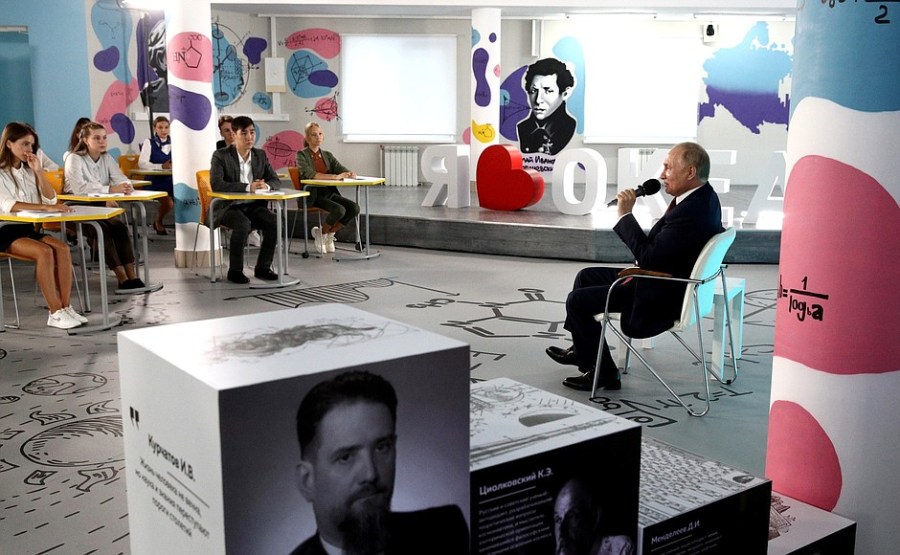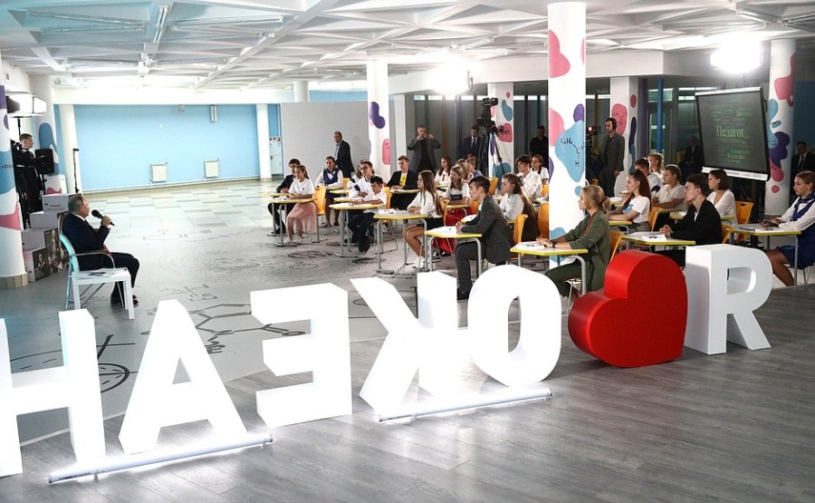 Lors de la Journée du savoir, Vladimir Poutine a eu une réunion au Centre national pour l’enfance d’Okean avec des élèves d’écoles, de gymnases et de lycées, les lauréats des olympiades et des concours dans les domaines de la culture, de l’art, de la science et du sport.
