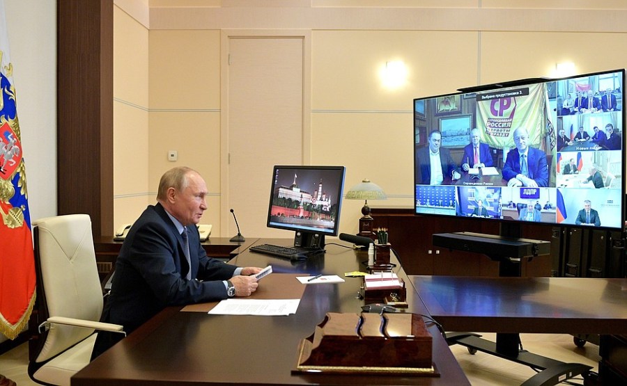 Le président tient une réunion, par vidéoconférence, avec les dirigeants des partis politiques élus à la 8e convocation de la Douma d’État de l’Assemblée fédérale de la Fédération de Russie.