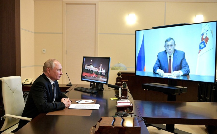 Vladimir Poutine a eu une réunion, par visioconférence, avec le chef de la République de Mari El Alexander Yevstifeyev pour discuter de la situation socio-économique de la République.