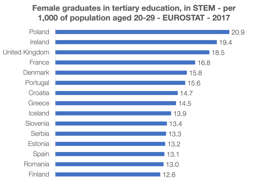 et la première place du classement pour les femmes diplômées en STEM au sein de l’Union européenne.