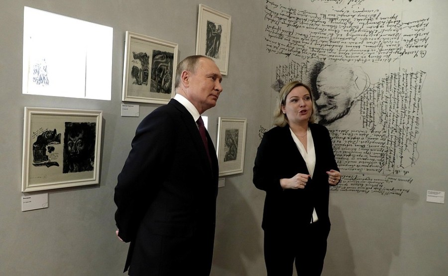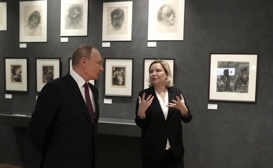 1 Avec la ministre de la Culture Olga Lyubimova lors d’une visite au Centre-musée de la Maison Dostoïevski de Moscou.