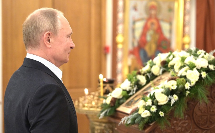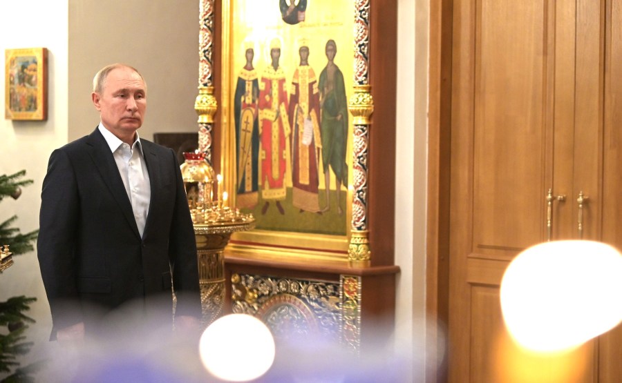 La veille de Noël, Vladimir Poutine a assisté aux services religieux à l’église du Mandylion à Novo-Ogaryovo.