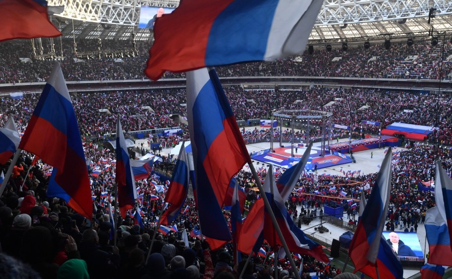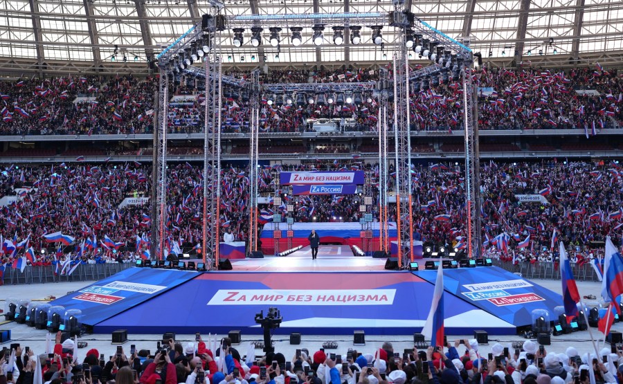 Vladimir Poutine a assisté à un concert dédié au huitième anniversaire de la réunification de la Crimée avec la Russie, qui a eu lieu au complexe sportif Loujniki à Moscou.