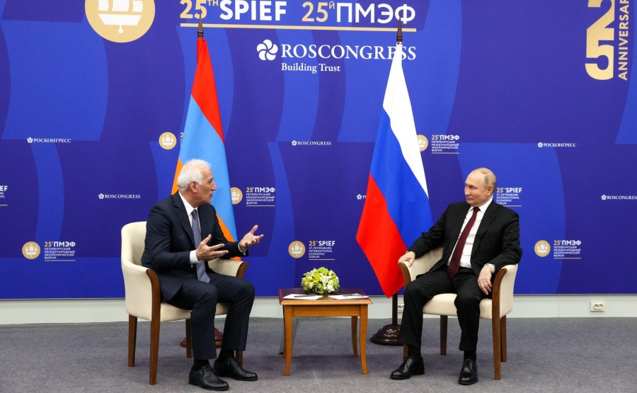 Vladimir Poutine a rencontré le président de la République d’Arménie Vahagn Khatchatourian en marge du SPIEF 2022.