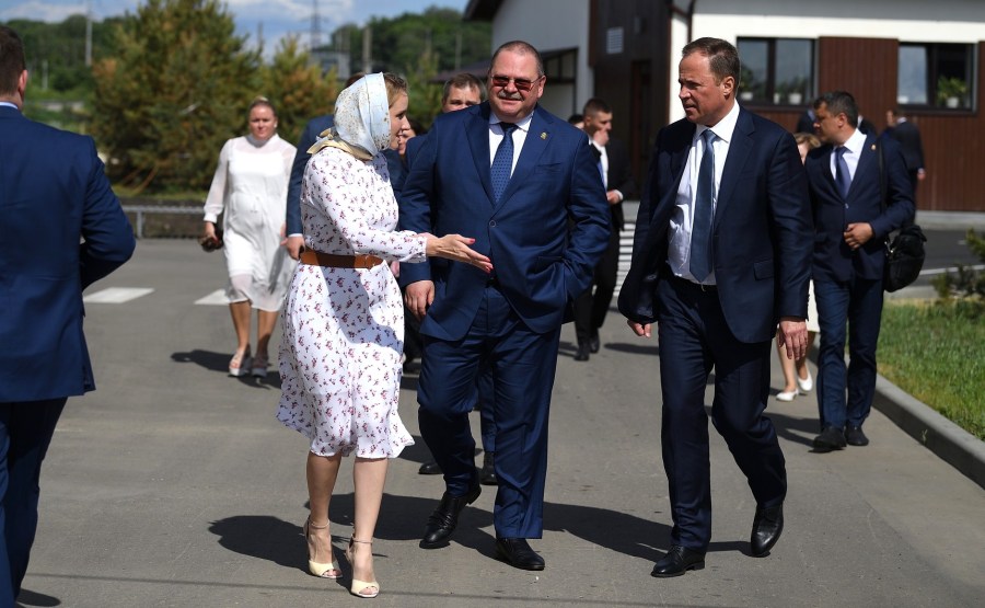 2 sur 5 Commissaire aux droits de l’enfant Maria Lvova-Belova, envoyé plénipotentiaire présidentiel dans le district fédéral de la Volga Igor Komarov (à droite) et gouverneur de la région de Penza Oleg Melnichenko lors d’une visite au domaine artistique inclusif de Novye Berega dans le village de Bogoslovka, région de Penza. Photo : Service de presse du Commissaire présidentiel aux droits de l’enfant. Photo du service de presse du Commissaire présidentiel aux droits de l’enfant