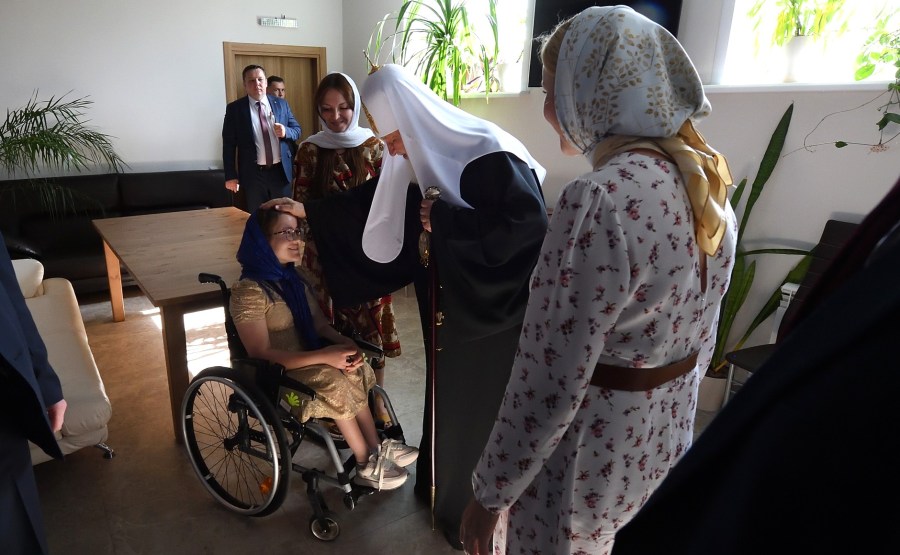 Mme Lvova-Belova a fait visiter Novye Berega au patriarche, l’a présenté aux habitants et lui a montré les conditions dans lesquelles ils vivent, étudient et travaillent.