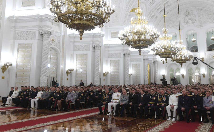 6 Rencontre avec les diplômés des écoles supérieures militaires du 21 juin 2022 – 13h20 – Le Kremlin, Moscou