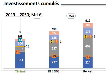 Confié au cabinet Roland Berger qui l’a modélisé, le scénario du Cérémé permettrait non seulement de décarboner la production électrique à hauteur de 95% mais aussi d’économiser près de 319 milliards d’euros d’investissement par rapport aux orientations présentées par le Président de la République à Belfort le 10 février dernier, tout en répondant à l’électrification des usages et en garantissant la sécurité d’approvisionnement électrique et l’indépendance énergétique de la France.