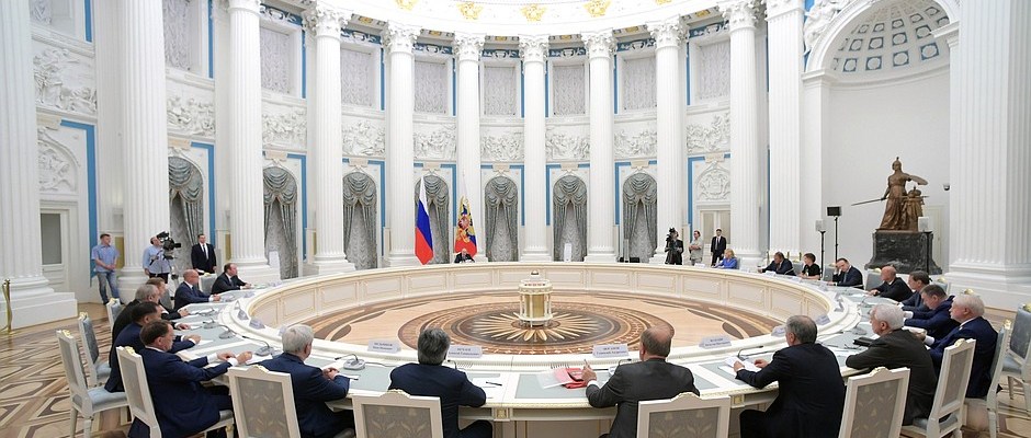 Au Kremlin, dans la salle Sainte-Catherine, le président a rencontré les dirigeants de la Douma d’État et les chefs des factions du parti à la Douma d’État de l’Assemblée fédérale de la Fédération de Russie.