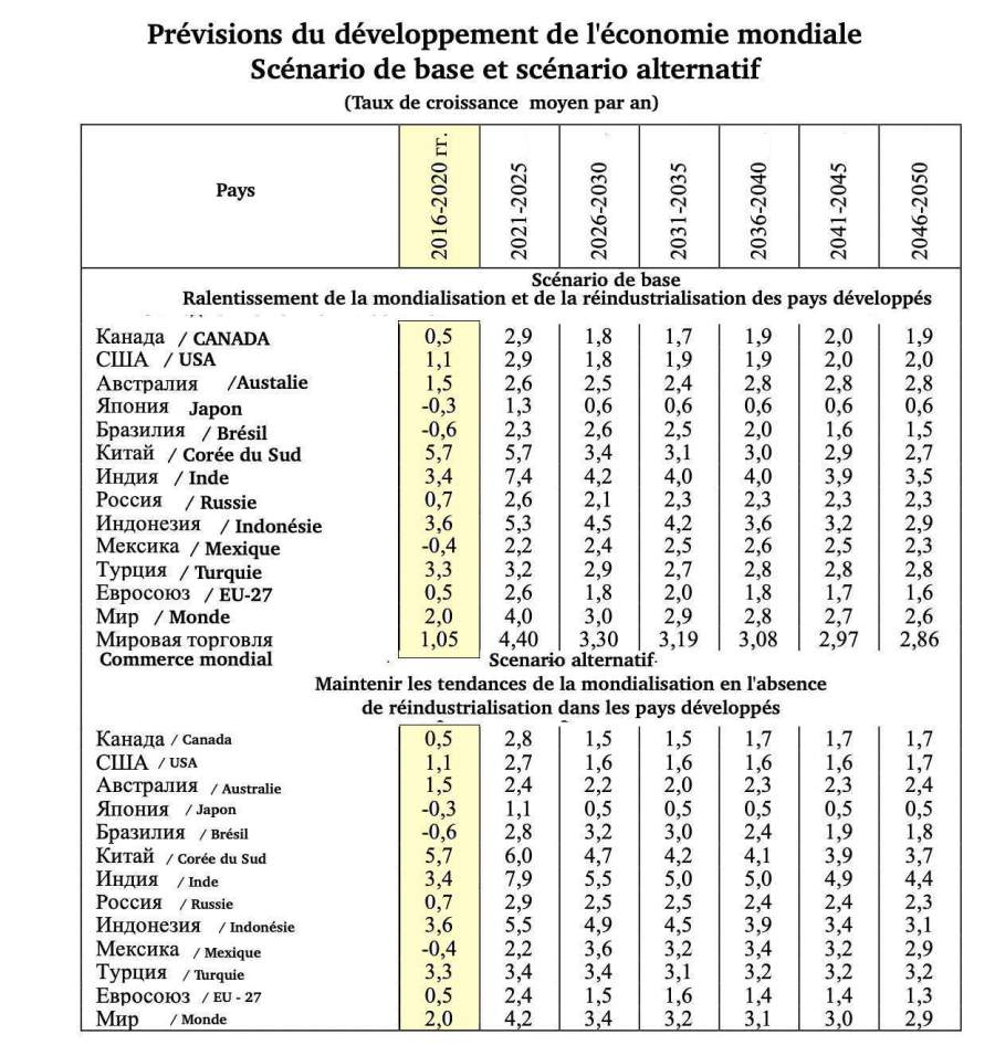 Il existe une forte probabilité quant à la formation d’un scénario de régionalisation de l’économie mondiale, dans lequel le taux de croissance du PIB mondial dépassera le taux de croissance des exportations mondiales. Cela constitue donc ce que nous appellerons le scénario de base. Nous lui opposons un scénario de poursuite inertielle de la mondialisation, qui semble peu probable.
