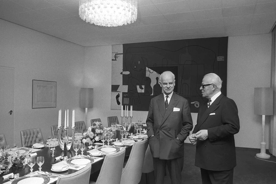 albert-weitnauer-a-gauche-avec-le-ministre-suisse-des-affaires-etrangeres-pierre-graber-a-lambassade-de-suisse-a-londres-en-fevrier-1972.