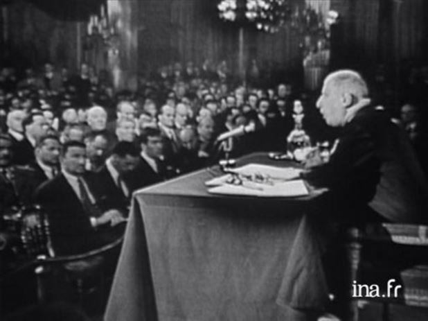 « Il s’agit aussi de mettre en œuvre successivement: la détente, l’entente et la coopération dans notre Europe tout entière, afin qu’elle se donne à elle-même sa propre sécurité après tant de combats, de ruines et de déchirements. Il s’agit, par-là, de faire en sorte que notre Ancien Continent, uni et non plus divisé, reprenne le rôle capital qui lui revient, pour l’équilibre, le progrès et la paix de l’univers. »