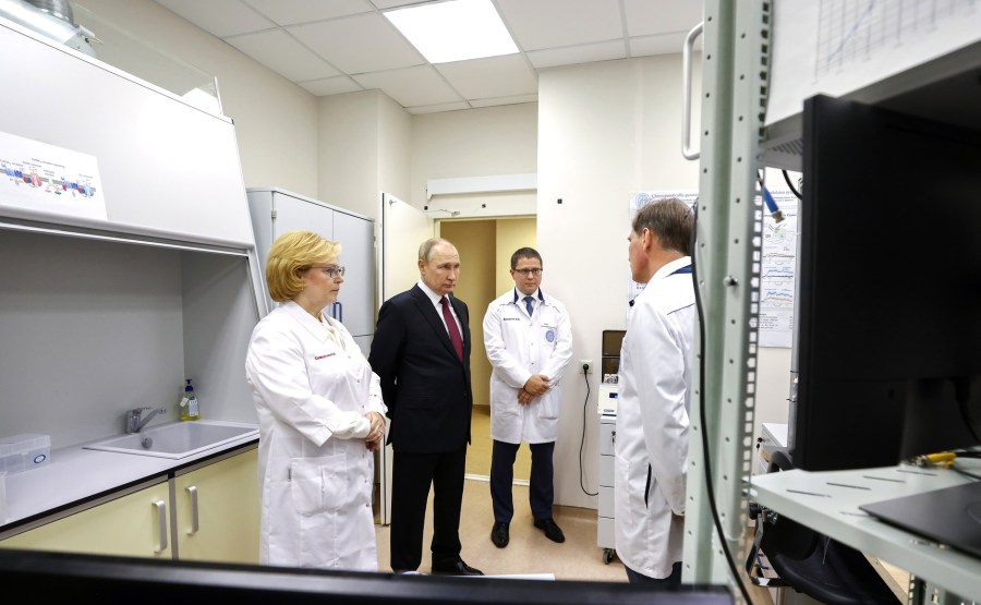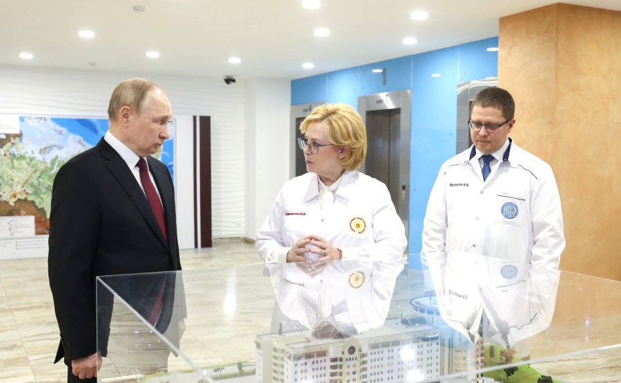 Le président était accompagné du chef de l’Agence fédérale médicale et biologique (FMBA) Veronika Skvortsova et du directeur du Centre fédéral FMBA pour le cerveau et la neurotechnologie, Vsevolod Belousov.