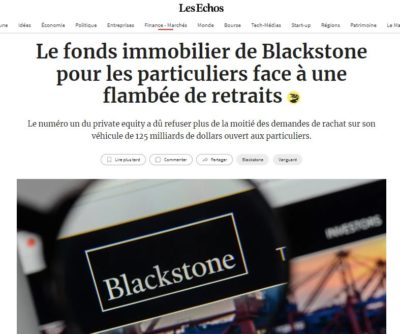 Egalement du côté du fonds Starwood Real Estate Income Trust, plus petit mais très connu, des mesures ont également été prises après que son fonds qui dispose de presque 15 milliards de dollars d’actifs a recu des demandes de rachat dépassant les 3 % des actifs au mois de novembre. Et la aussi il s’agit de limiter et de bloquer les demandes de sorties et de rachat.