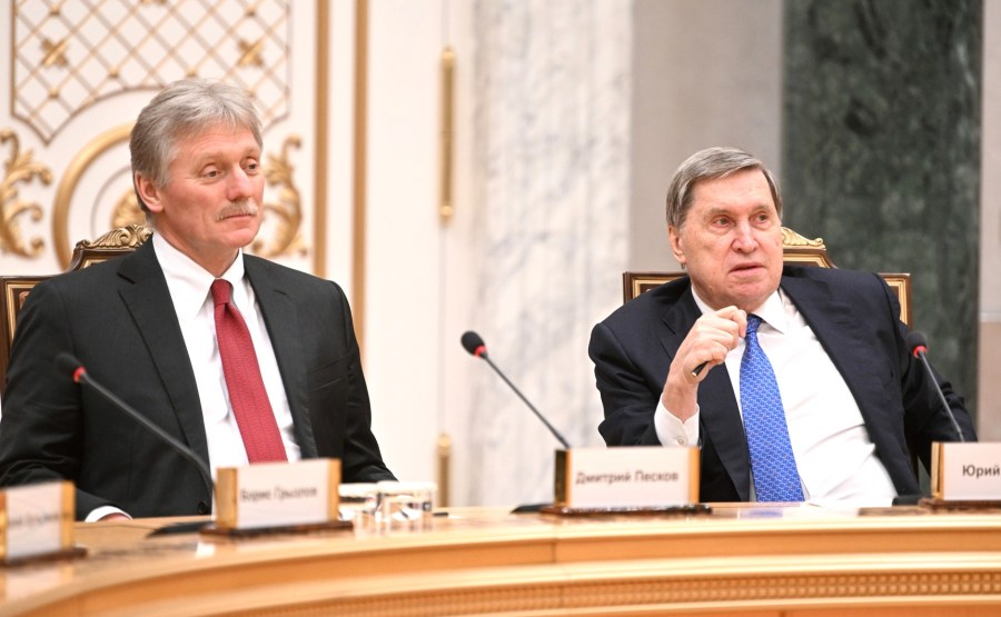 2 sur 10 Avant les pourparlers russo-biélorusses. L’attaché de presse présidentiel Dmitri Peskov (à gauche) et l’assistant présidentiel Iouri Ouchakov. Photo : Pavel Bedniakov, RIA Novosti