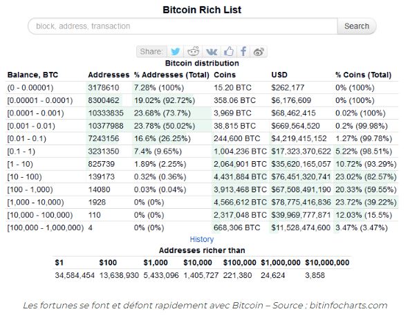 4°/Bitcoins. Destruction de valeur et de fortunes ! 75 000 millionnaires en moins.