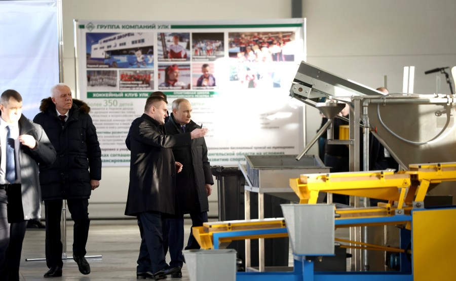 L’envoyé plénipotentiaire présidentiel dans le district fédéral du Nord-Ouest Alexander Gutsan et le gouverneur de la région d’Arkhangelsk Alexander Tsybulsky ont accompagné le président, tandis que le directeur général du groupe ULK Vladimir Butorin a dirigé la tournée.