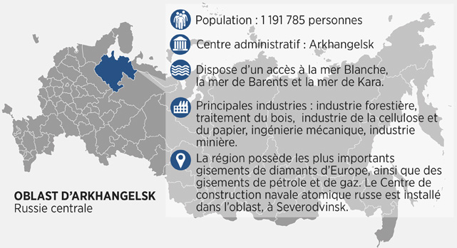 note — L’Oblast d’Arkhangelsk (en russe : Арха́нгельская о́бласть, Arkhanguelskaïa oblast) est une entité fédérale russe (oblast). Il inclut l’Archipel François-Joseph et la Nouvelle-Zemble, de même que le district autonome de Nénétsie. Son gouverneur est Ilia Mikhaltchouk.