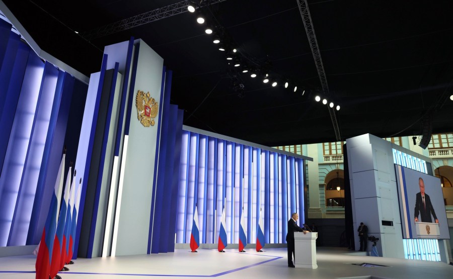 1 sur 25 -Avant l’allocution présidentielle à l’Assemblée fédérale. Photo : Sergueï Karpoukhine, TASS