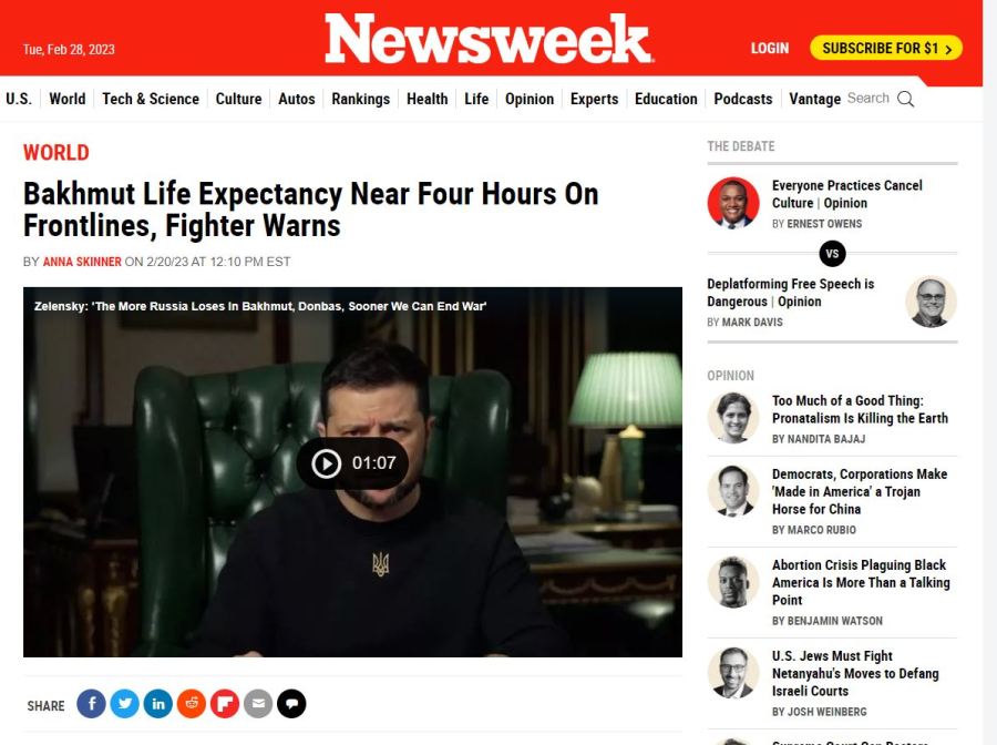 4°/Réveillez-vous ! C’est une boucherie. L’espérance de vie à Bakhmut est de 4 heures sur les lignes de front.