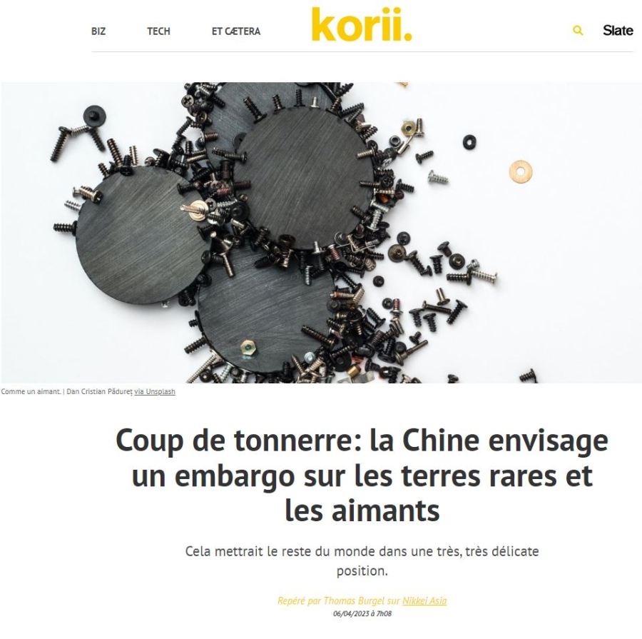 2°/Chine… vers un embargo sur les terres rares et les aimants à l’égard de l’Occident.