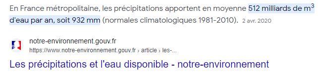 Ce n’est pas moi qui le dis c’est machin.gouv.fr qui est un site officiel. Contentons-nous des sources officielles, elles sont largement suffisantes pour démontrer l’absurdité des discours actuels sur l’eau.