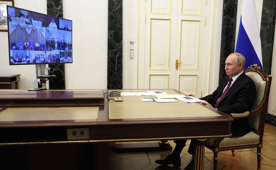 Vladimir Poutine a tenu une réunion, par visioconférence, avec des familles décorées de l’Ordre de la gloire parentale à l’occasion de la Journée internationale de l’enfant.