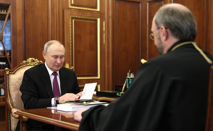 Vladimir Poutine a rencontré l’archiprêtre Alexander Tkachenko, président du conseil d’administration de la Fondation Circle of Kindness.