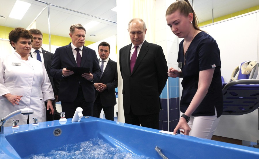 Escorté par le ministre de la Santé Mikhail Murashko et le gouverneur de la région de Moscou Andrei Vorobyov, le président a visité un centre de consultation et de diagnostic, une unité d’hydrothérapie, une zone scolaire de réadaptation sociale et psychologique, une salle de sport avec des équipements médicaux et des services hospitaliers fixes.