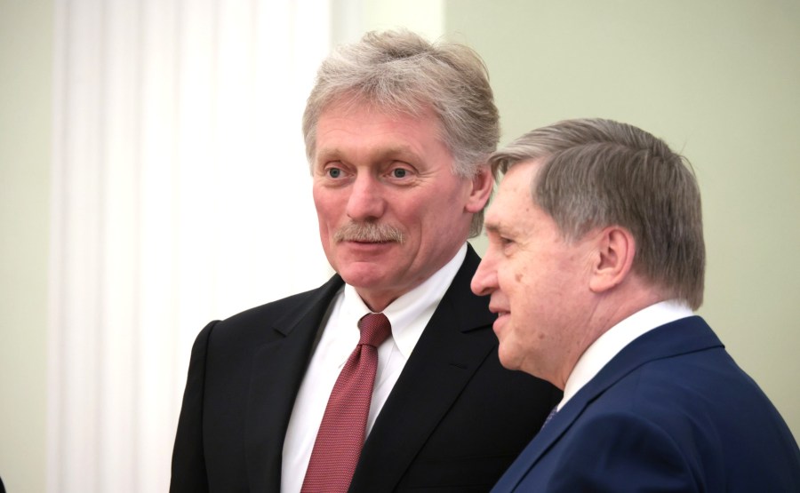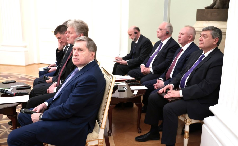 4 Chef de cabinet adjoint du bureau exécutif présidentiel, secrétaire de presse présidentiel Dmitri Peskov et aide au président Iouri Ouchakov, à droite, avant les pourparlers. Photo: Mikhaïl Metzel
