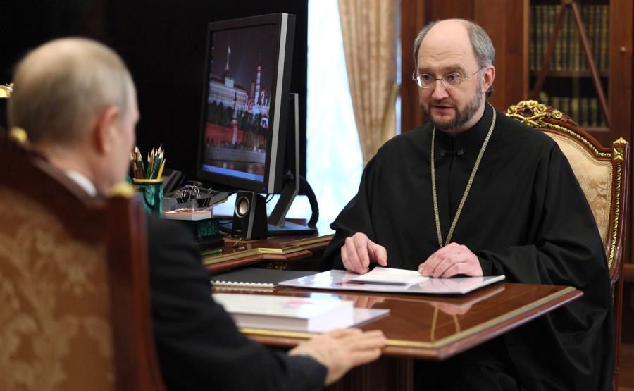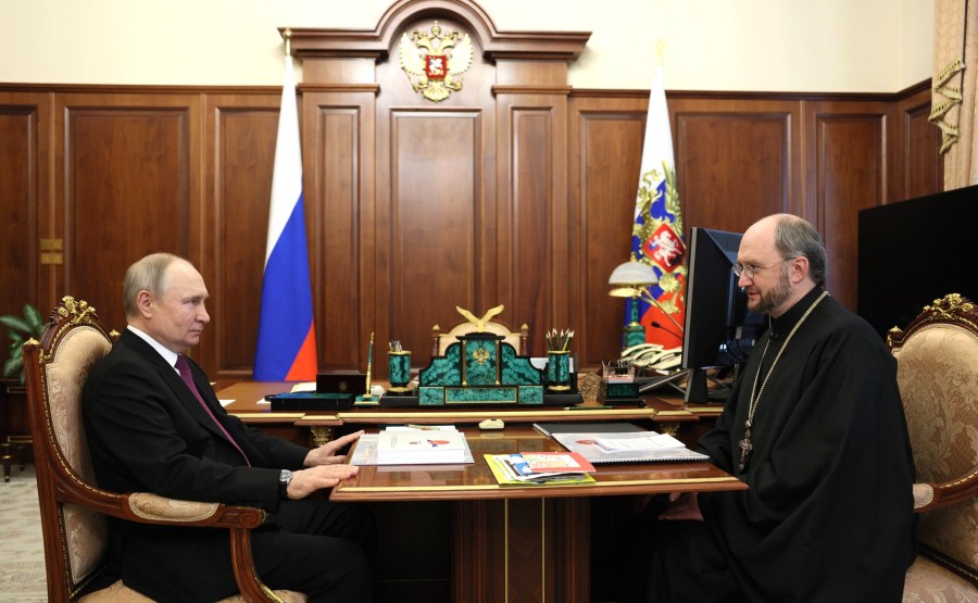 Vladimir Poutine a rencontré l’archiprêtre Alexander Tkachenko, président du conseil d’administration de la Fondation Circle of Kindness.