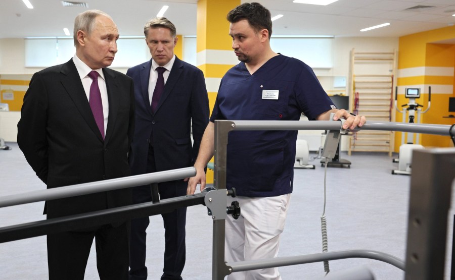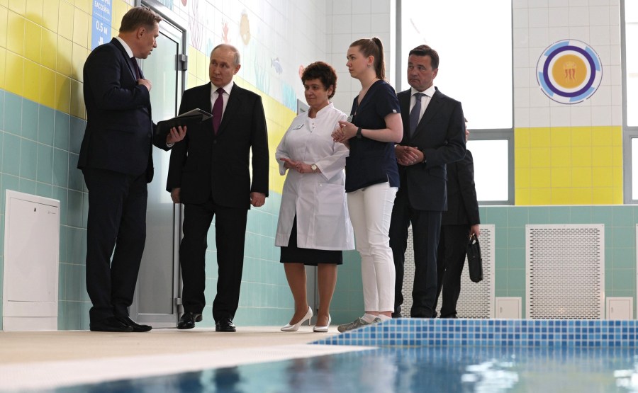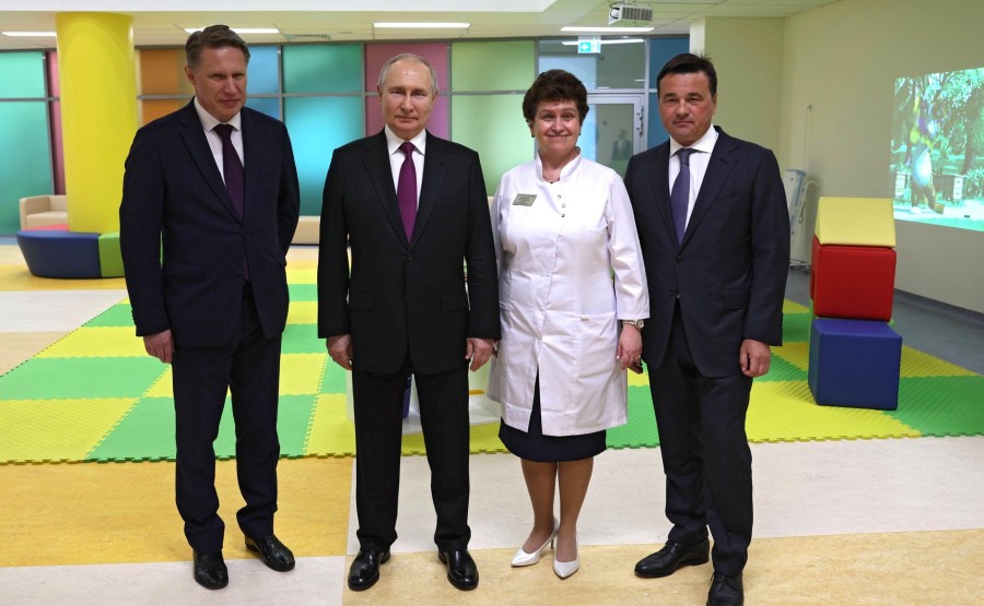 Escorté par le ministre de la Santé Mikhail Murashko et le gouverneur de la région de Moscou Andrei Vorobyov, le président a visité un centre de consultation et de diagnostic, une unité d’hydrothérapie, une zone scolaire de réadaptation sociale et psychologique, une salle de sport avec des équipements médicaux et des services hospitaliers fixes.