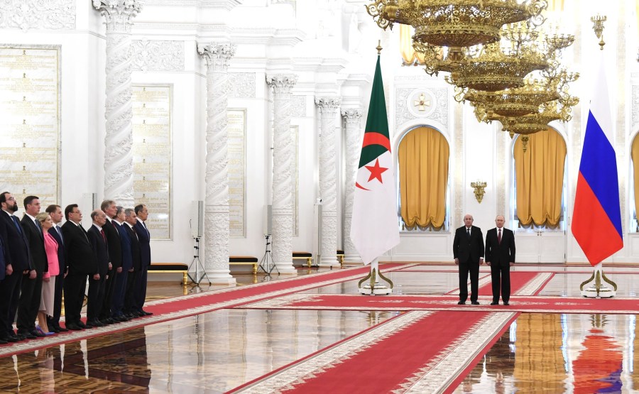 Dans l’ensemble, le programme du président algérien ici est extrêmement intensif et substantiel. Il a rencontré le Premier ministre russe et les présidents des deux chambres de l’Assemblée fédérale. Mr. Tebboune a également assisté au forum d’affaires Russie-Algérie et à la cérémonie d’inauguration d’une place portant le nom du héros national algérien Emir Abdelkader dans le centre de Moscou. Je voudrais noter qu’à l’époque tsariste, je crois, Alexandre II lui a décerné l’Ordre de l’Aigle blanc en son temps.